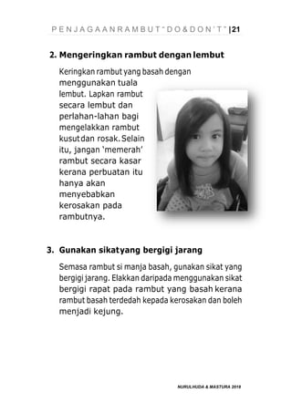 Rambut Berbuah in English. Rambut yang basah diikat ditutup dengan kain tebal mahupun diperap didalam tudung membuatkan rambut busuk dan lama kelamaan berbuah.
