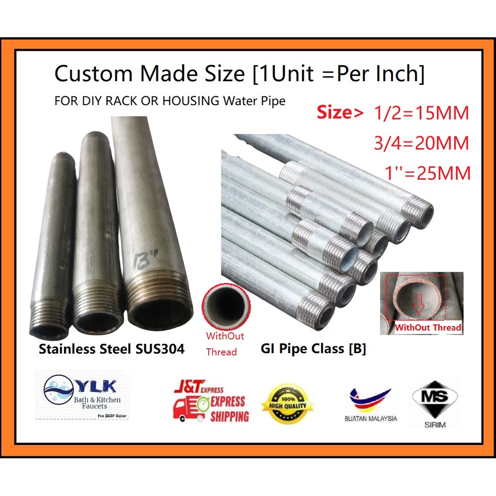 Ylk Per Inch 1 2 3 4 1 Stainless Steel Sus304 Gi Pipe Water Pipe With Thread Gigi Custom Made Size Sirim Shopee Malaysia